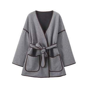 Gx & Za Vrouwen 2024 Herfst Nieuwe Mode Een Tweed Jasje Met Een Riemjas Vintage Lange Mouw Dames Chique Overjas