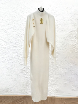 Getailleerde Damesrok Met Hoge Kraag En Lange Jurk Met Print